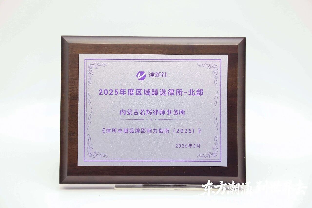 内蒙古若辉律师事务所凭借在北部地区长期深耕所积淀的专业实力与卓越市场表现,成功入选“律新社2025年度区域臻选律所(北部)”榜单。若辉所赵江龙律师成功入围“律新社2025年度管理合伙人20佳(北部)”榜单。2025年,若辉律所持续深耕北疆法律服务市场,凭借强劲的区域竞争力、高度的客户认可度,树立起优质品牌形象并发挥行业示范作用。此次登榜,是律新社等行业权威平台对若辉所区域影响力与综合专业实力的高度认可。同时,也肯定了若辉所在核心领域的精耕细作,现已成为根植北疆、辐射华北的重要法律服务力量。
